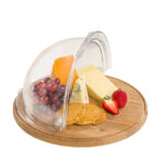 ظرف سرو کیک پایه چوبی و درب اکرولیک لیمون